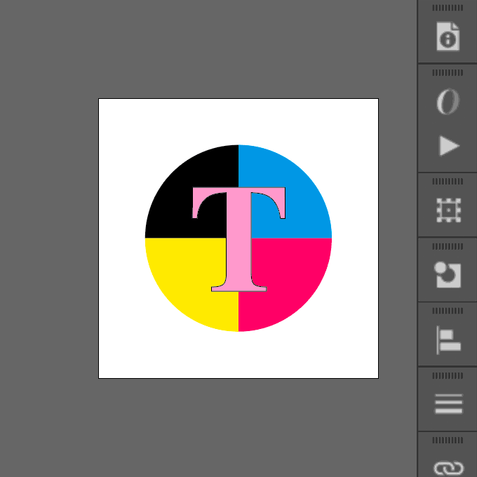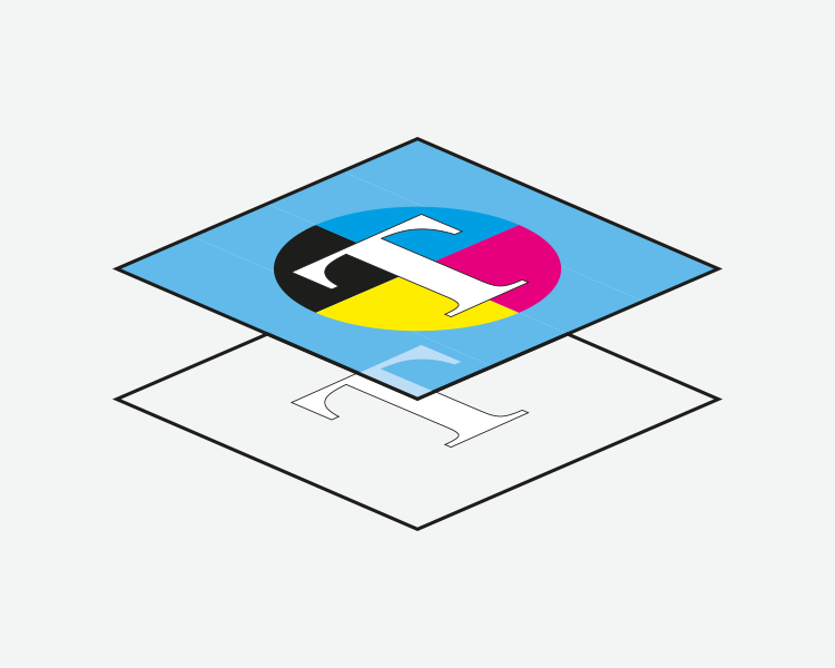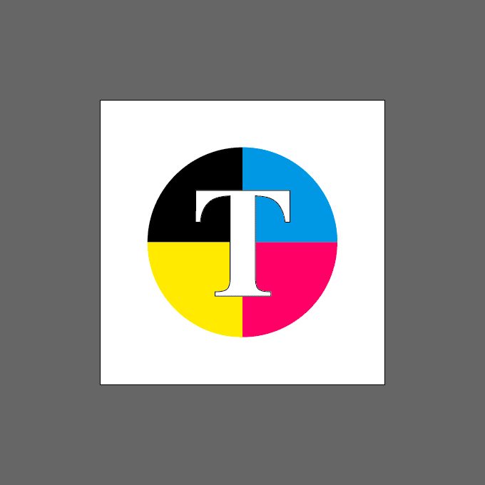 In dit voorbeeld laten we je zien hoe we de letter "T" voorzien van witprint terwijl de CMYK kleuren doorschijnen op de transparante achtergrond.