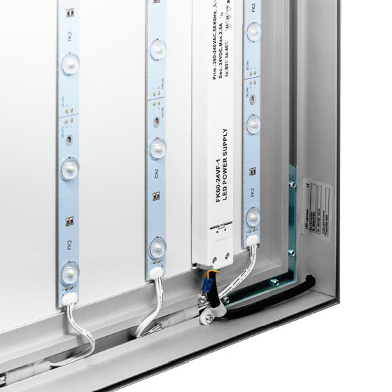 De LED frames worden geleverd in een LED op Dibond variant ( uitlichting vanaf de achterzijde ) of een Edgelit variant ( uitlichting met LED die gemonteerd is op het profiel aan de zijkanten.