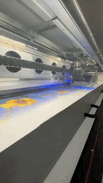 In tegenstelling tot een sublimatie inkt zit een UV print dus niet in de vezel van het materiaal. De UV inkten liggen bovenop het materiaal. Materialen die UV geprint zijn, worden ook niet nabehandeld op een kalander. Dit komt de snelheid van het productieproces ten goede.