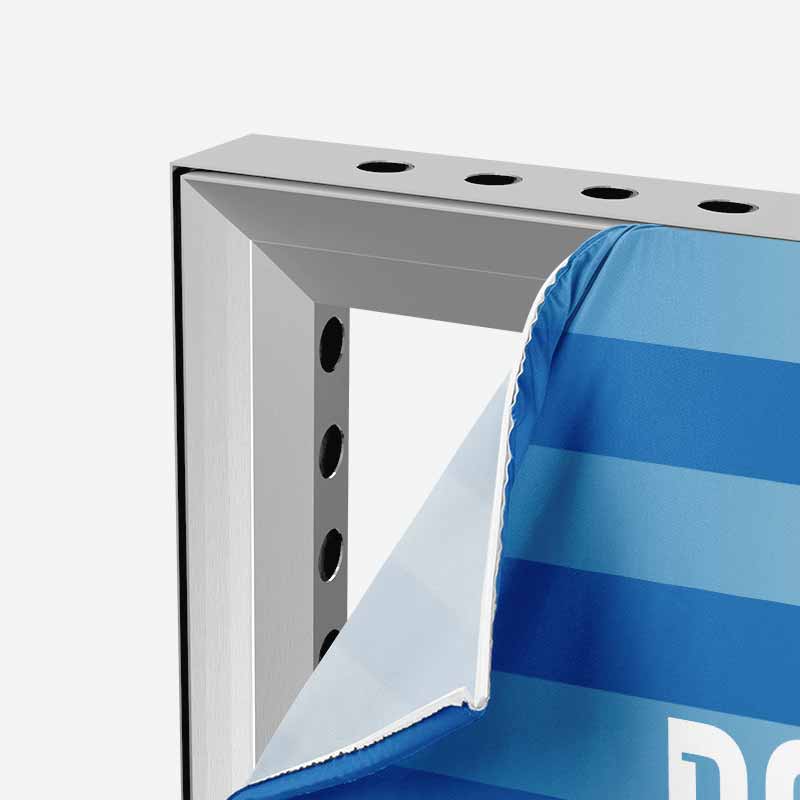 Bevat jouw stand frames met deuren en uitsparingen? Dat is ook geen probleem. We werken de doeken af in de gewenste vormen en formaten.
