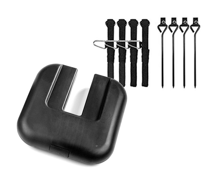 Maak dan gebruik van de voetplaten om het frame te verzwaren. Hierdoor is het frame stabieler in het geval van harde wind.