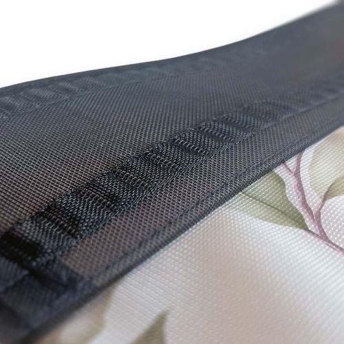 Deze doeken worden aan de bovenzijde voorzien van een wave gordijnband van 77 mm hoog. Deze band is voorzien van pockets waarin haakjes geplaatst kunnen worden. Met deze haakjes kan het doek aan een rail of ander ophangsysteem gehangen worden.
